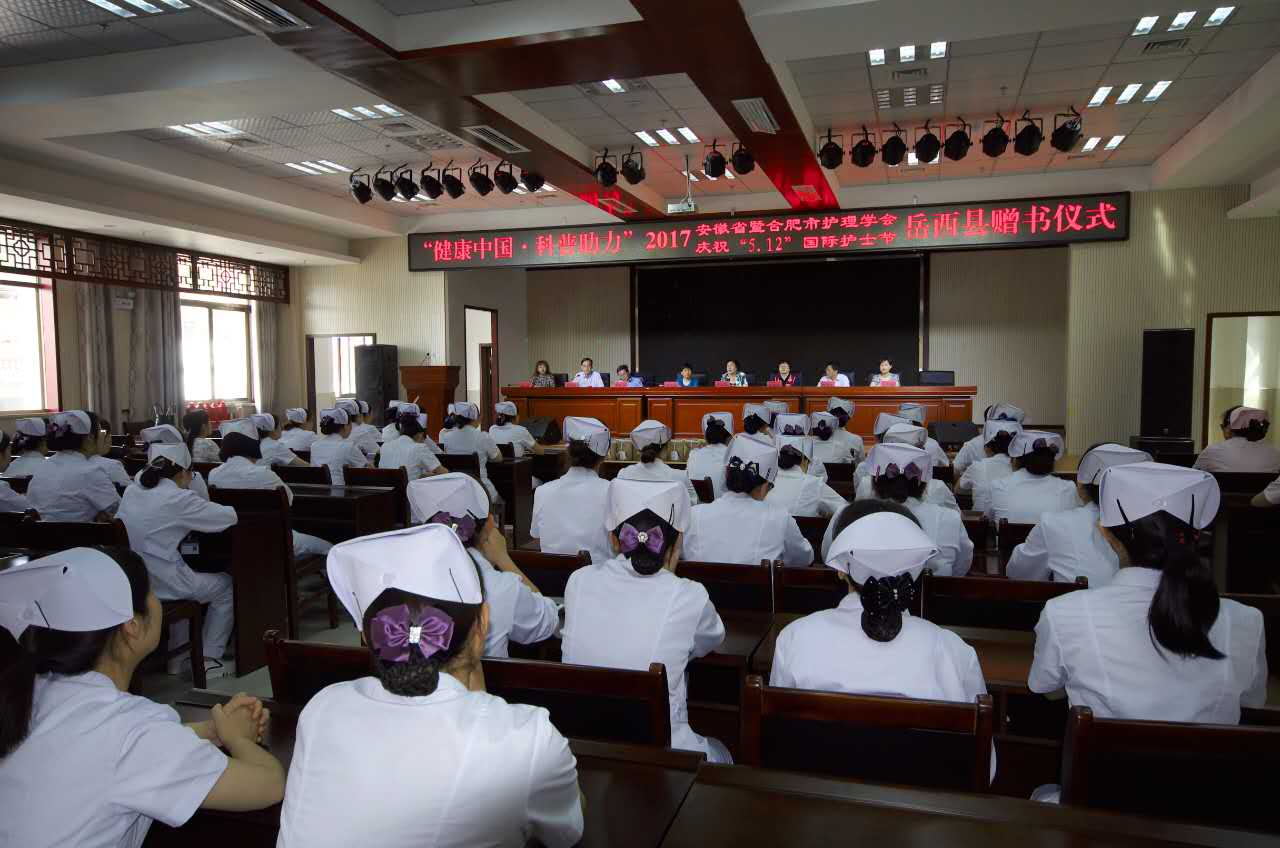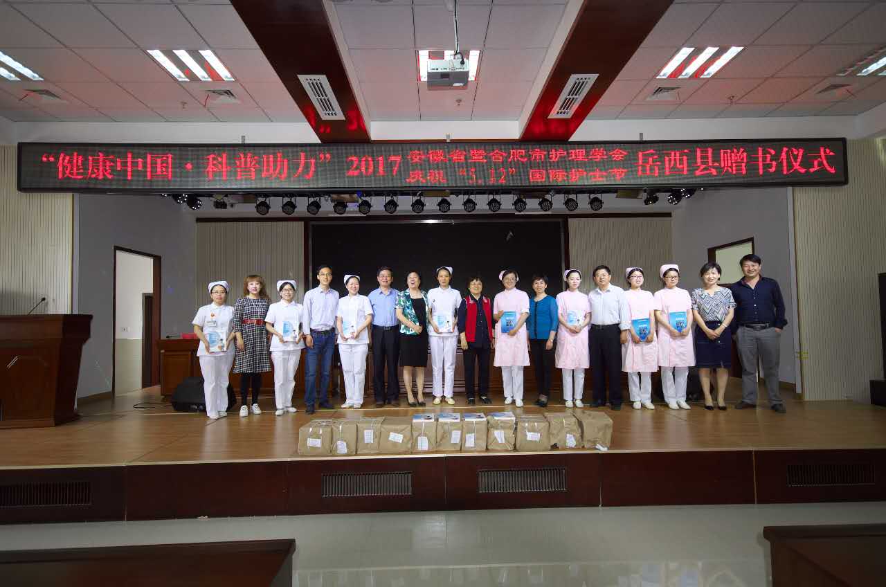 在“5.12国际护士节“来临之际,为表达对基层护理人员的关怀,2017年5月12日,合肥市护理学会联合安徽省护理学会深入革命老区岳西县开展“健康中国,科普助力”的赠书活动。