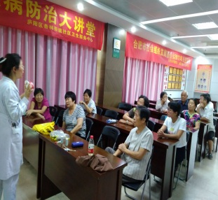2017年9月20日下午,合肥市护理学会长淮中心特邀合肥市第二人民医院徐道杨主任为辖区居民授课。徐主任用生动的语言进行了开场白,将大家的注意力直接吸引到讲座中来。接着用PPT形式讲解了高血压的定义,让大家了解什么是高血压,高血压的并发症等。很多人对高血压有很大的误区,在讲座过程中,有的老人家提问,徐主任也非常有耐心地回答老人家的问题,整个讲座气氛浓厚,大家热情高涨。讲座结束后,老人家们还一直围着徐主任,都想了解更多的高血压知识,还有的老人家回家去把自己正在服用的降压药拿了过来,询问现服用药物的效果和副作用。活动持续了近2个小时,有80余名居民参加,讲座活动让居民们不去医院就可以与专家零距离接触,且得到了大家的一致认可。