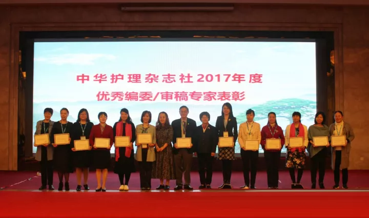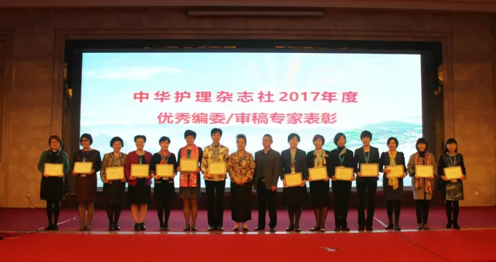 开幕式上李继平副理事长宣读了中华护理杂志社对2017年度优秀编委/审稿专家的表彰决定。根据中华护理杂志社网站审稿系统的统计数据,综合审稿数量、审稿质量和审稿时效等指标,评选出104名优秀编委/审稿专家,合肥市科学技术协会郭邓节主席及合肥市护理学会张建凤理事长等与会领导为优秀编委/审稿专家代表颁奖。