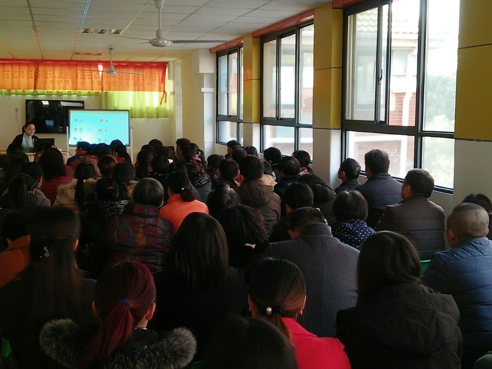 2017年12月27日芙蓉社区卫生服务中心特邀合肥市口腔医院的专家陈黎医生为儿童及其家长们讲解口腔保健。内容主要通过这几个方面进行:乳牙特点,牙病防治方法。孩子有了虫牙怎么办。刷牙的相关知识。牙与全身健康的关系。由这些主要内容,简洁易懂的方式向儿童及其家长们较为详细的进行讲解。讲解过程中,也通过图片材料让儿童及其家长们更加容易了解口腔保健的重要性和如何保健。此次的宣传讲座让更多家长们了解儿童口腔保健的意义和重要性,并宣传口腔保健的相关知识,帮助儿童拥有一个健康的口腔。此次参与讲座的人员共69人。