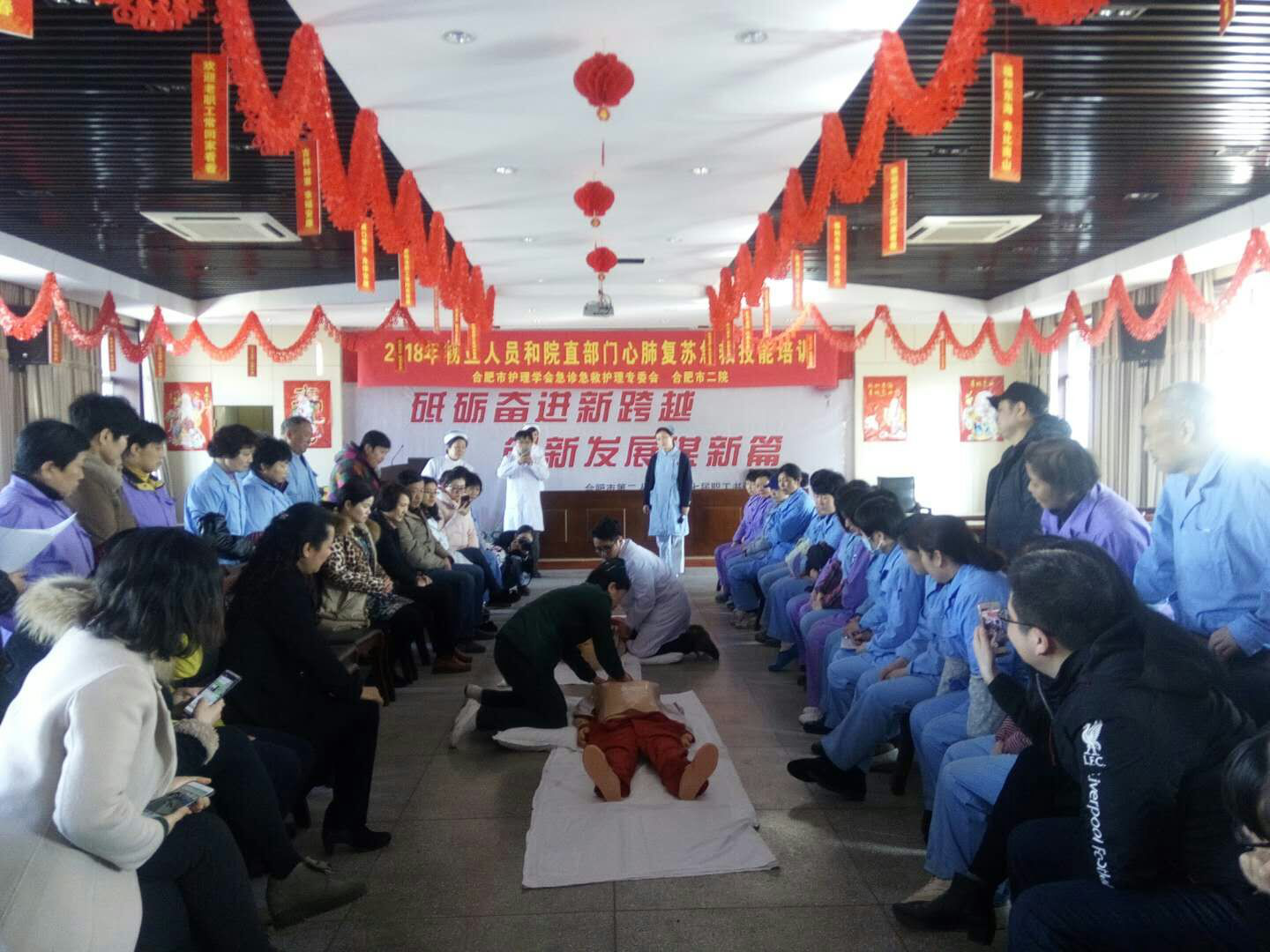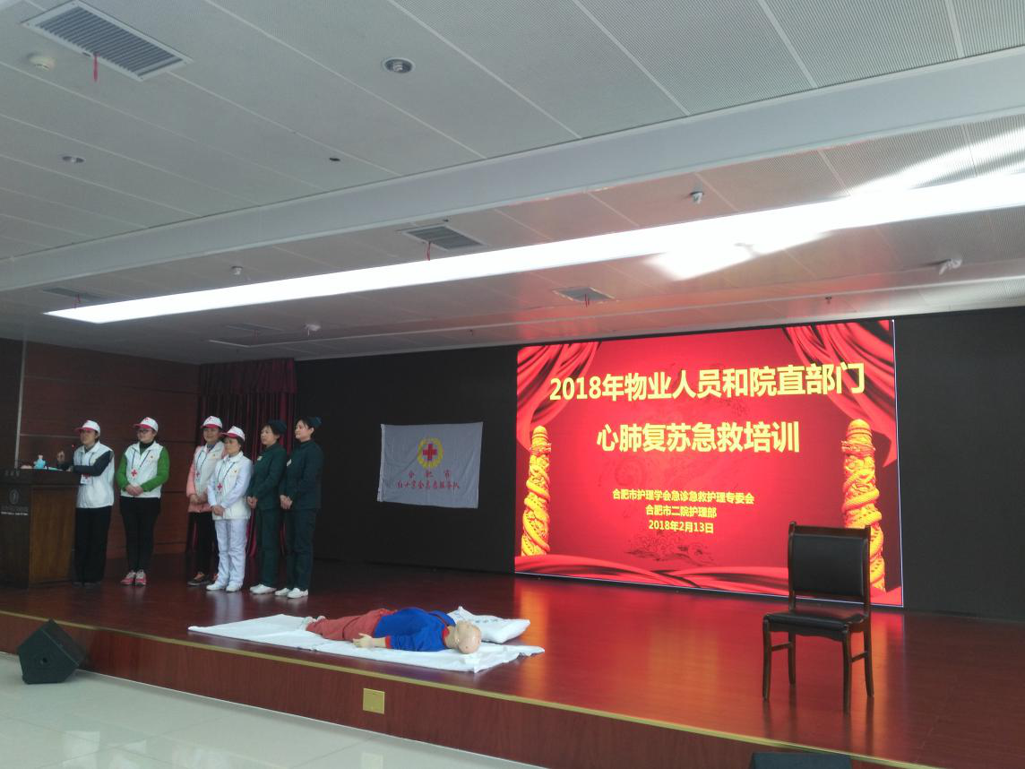 为提高广大民众的急救意识和急救技能,值此新春佳节来临之际,合肥市护理学会红十字志愿者服务队、合肥市二院于2月13日分别在和平路院区、广德路院区大礼堂为院直部门、物业等人员开展心肺复苏和急救相关技能培训。