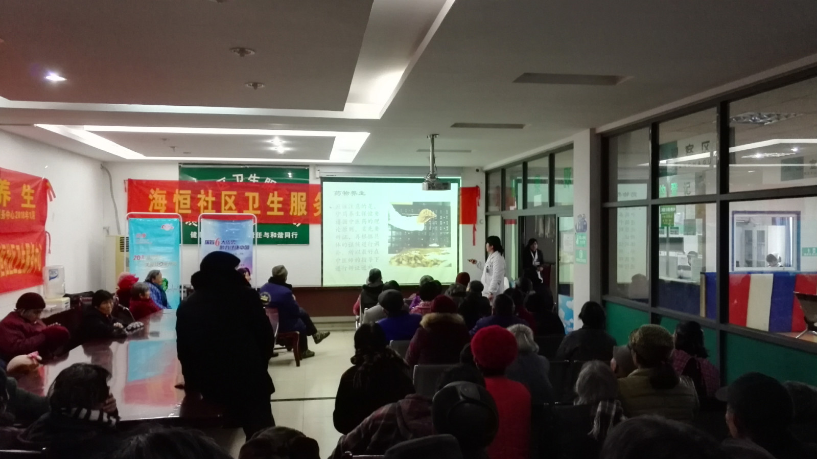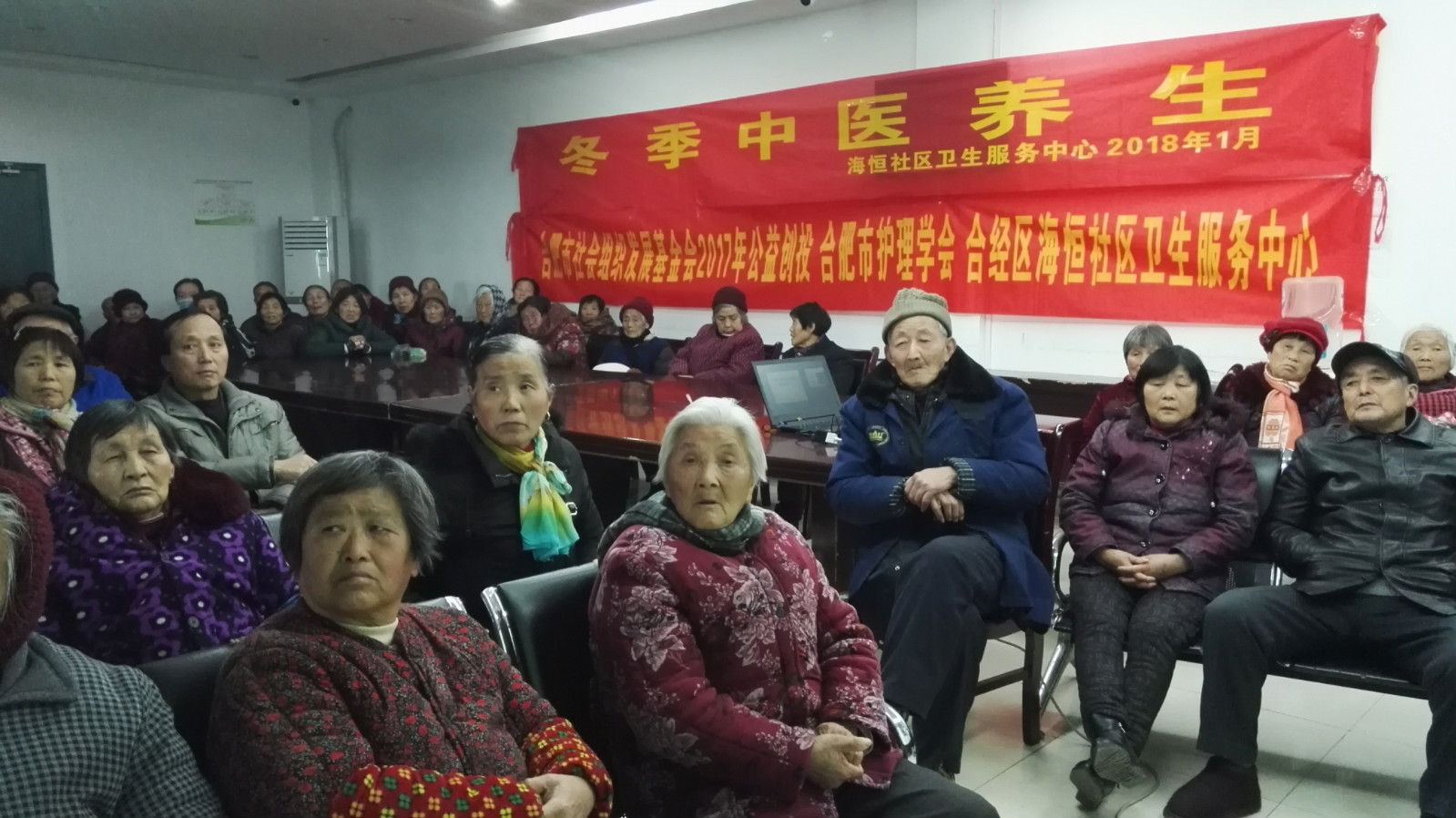 2018年1月18日,合肥市护理学会海恒社区卫生服务中心公共卫生科组织了冬季中医养生大型宣讲活动,辖区85位居民参加。现场活动通过播放幻灯片、悬挂主题条幅、发放宣传单、摆放展板等方式普及冬季中医养生知识。活动现场共发放宣传材料300余份。
