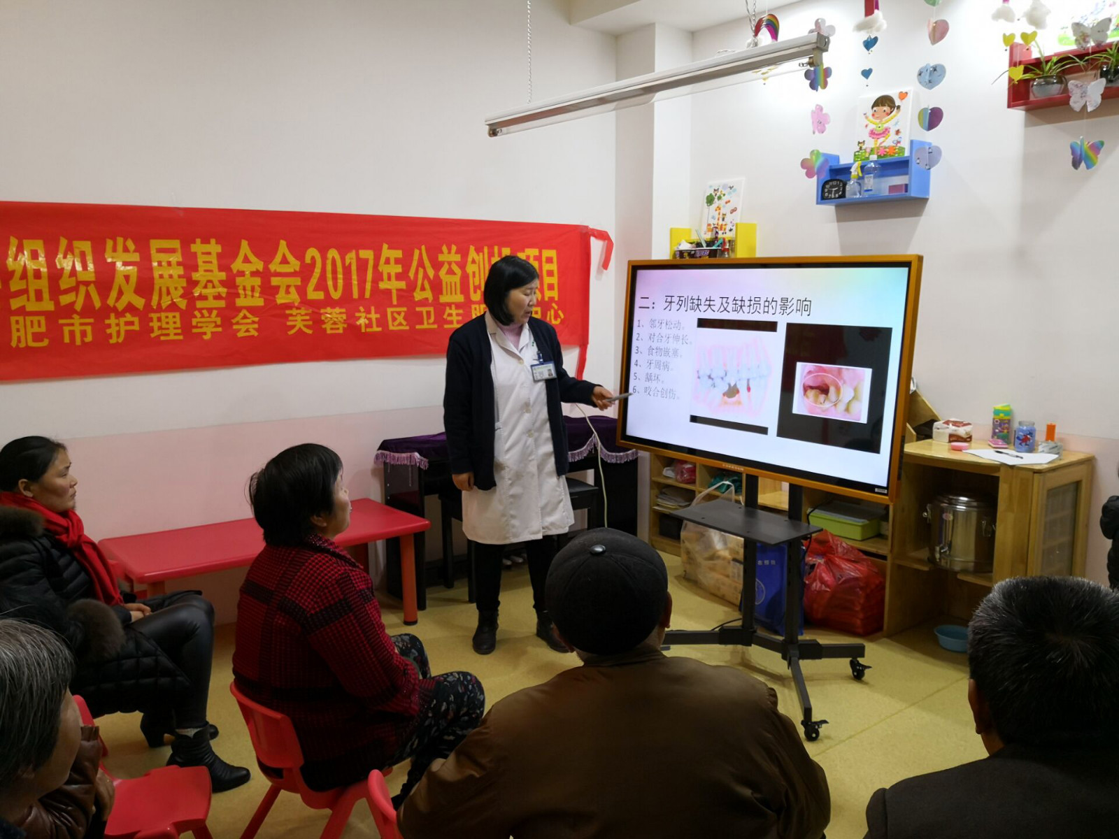 2018年02月23日芙蓉社区卫生服务中心为宣传口腔保健对儿童的重要性,并普及相应的保健知识,特邀合肥市口腔医院的专家陈黎医生为儿童及其家长们讲解口腔保健。内容主要通过这几个方面进行:乳牙特点,牙病防治方法。刷牙的相关知识。牙与全身健康的关系。通过简洁易懂的方式向儿童及其家长们较为详细的进行讲解。讲解过程中,也通过图片材料让儿童及其家长们更加直观了解口腔保健的重要性和如何保健。此次参与讲座的人员共20人。