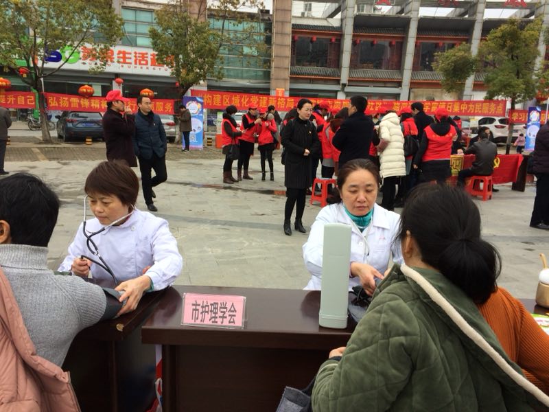 3月2日上午,为迎接3·5雷锋日,弘扬雷锋精神,市科协在包河区骆岗街道包河花园A区开展了“雷锋服务日活动”,市护理学会组织安徽省妇幼保健院、合肥市一院、合肥市二院等会员单位多名护理工作人员参加了本次活动,现场接受居民咨询、义务、开展健康宣教和体检公益活动,共有300多位居民享受了免费体检,接受体检的年龄最大的居民已有90多岁高龄,现场共发放健康教育宣传资料3000余份。