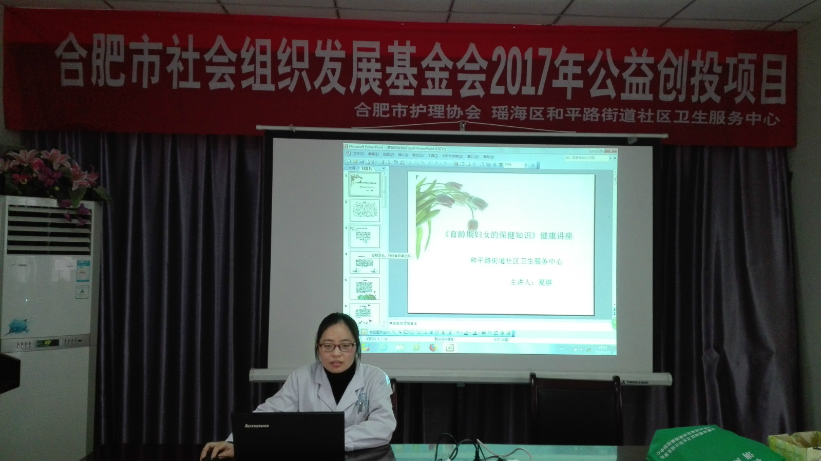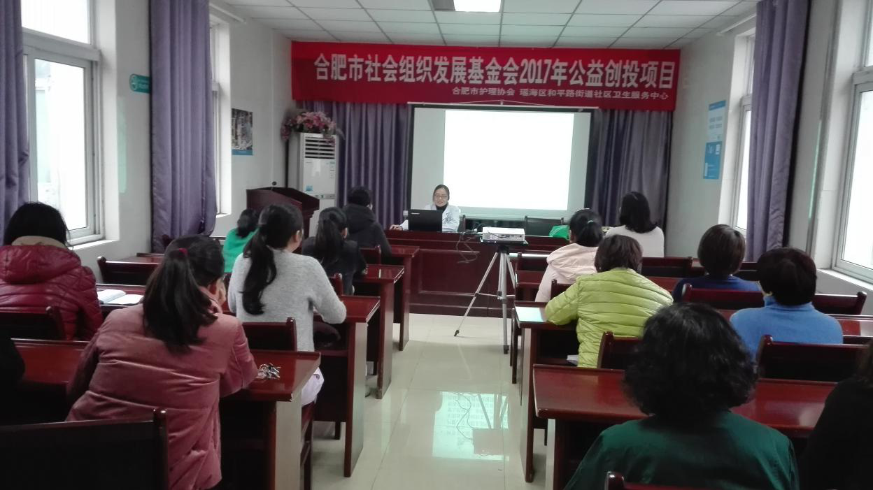 2018年3月30日,在合肥市社会发展基金会2017年公益创投项目的赞助下,海恒社区卫生服务中心儿保科医生罗玉为辖区的幼儿家长开展了春季常见传染病防控主题知识宣讲活动,41位幼儿家长现场认真聆听。现场活动通过播放幻灯片、悬挂主题条幅、发放宣传单、摆放展板等方式普及幼儿家长传染病相关知识与误区。活动现场共发放宣传材料150余份。