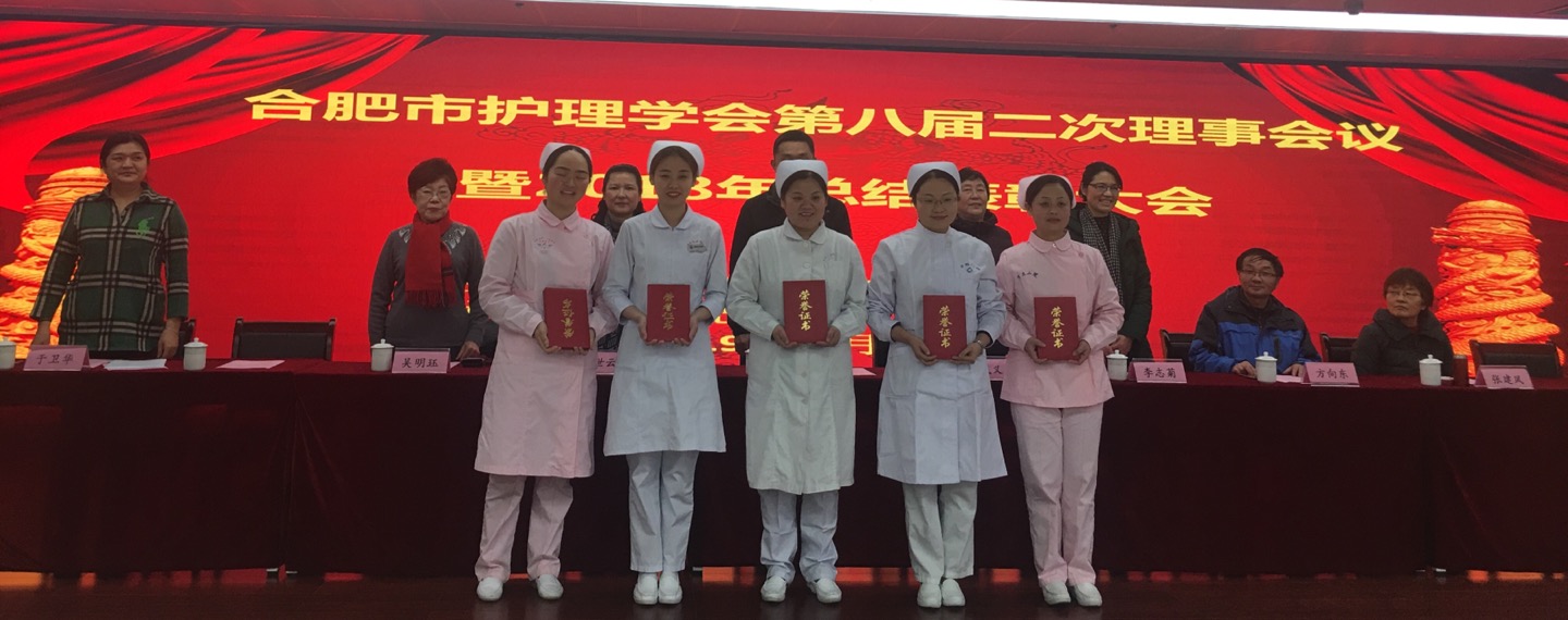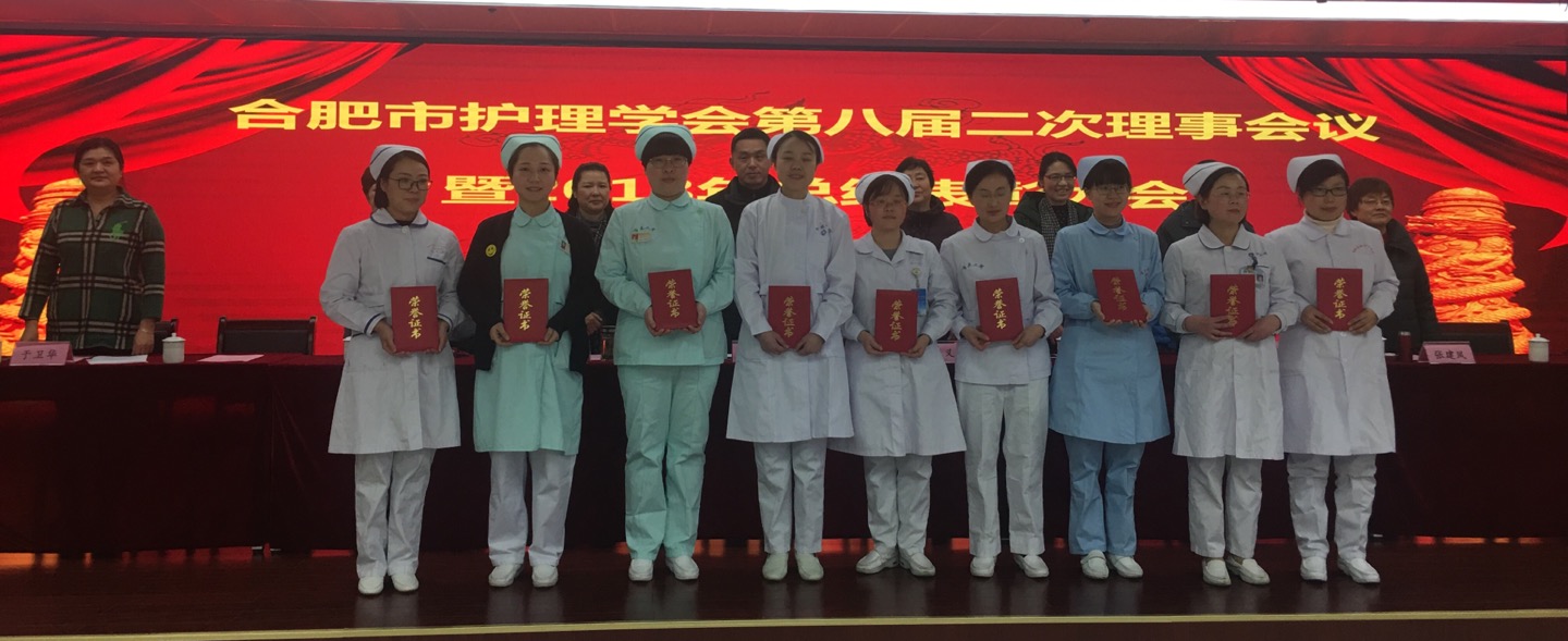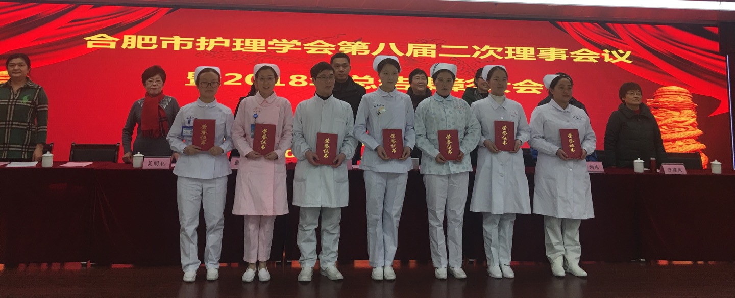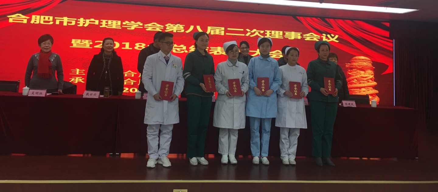 市学会唐荣兰副理事长宣读2018年度优秀护理论文、2018年急诊急救技能大赛、合肥市首届儿科带教老师授课演讲大赛、合肥市消毒供应中心新规范理论知识竞赛表彰奖励的决定,并由市科协及省护理学会领导分别为获奖者颁发荣誉证书和奖金。