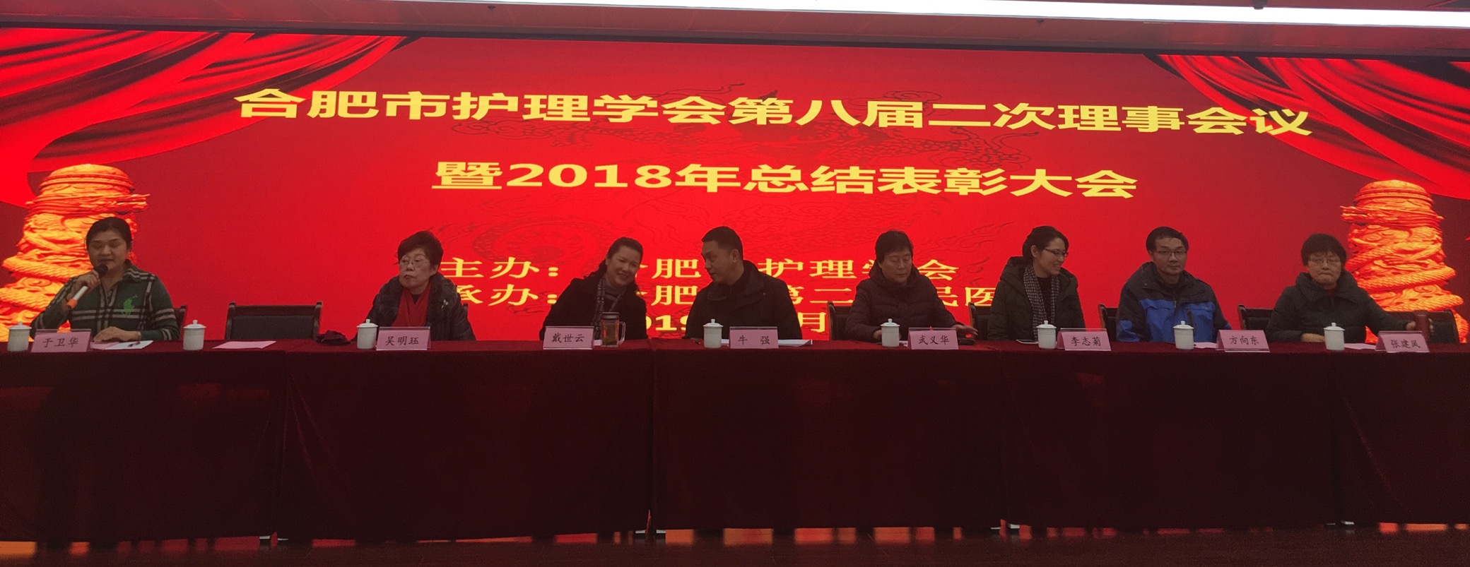 2018年1月8号合肥市护理学会第八届二次 理事会议在合肥市第二人民医院广德院区顺利召开,合肥市科协及安徽省护理学会各位领导,市护理学会理事及专业委员会主任委员出席会议。会议由是学会秘书长于卫华主持并隆重介绍了出席嘉宾 , 合肥市二院戴世云副院长致欢迎辞