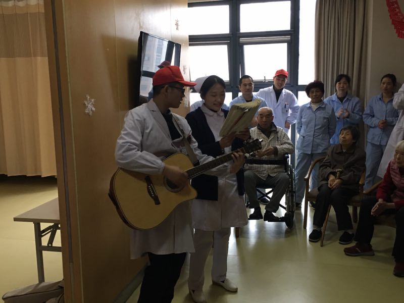 本次活动中,男护士门纷纷发挥自己的护理专业特点和个人特长,为老人送去一套利于其身心健康的大餐。一是为在护理院住院的老人们做基础护理和生活护理及疾病指导,包括饮食护理、皮肤护理、管道护理、康复护理、安全管理、心理护理、健康教育。二是与护理院的医护同仁交流护理老人的相关专业知识与技能,分享临床护理工作的经验。三是为他们带去精彩纷呈的节目,有独唱、有吉他表演等。同时还看望了住在护理院的我省南丁格尔奖获得者汪赛进女士,也表达了年轻护理人对护理前辈的敬仰之情,他们对老人身心健康方面给予了极大的关爱和抚慰。此次活动是发扬雷锋精神的真实写照,也寄托了党和政府对老人的尊重和关怀,受到护理院老人、广大医护人员的热烈欢迎和一致好评。