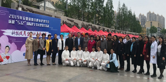 2019年4月28日为庆祝5.12国际护士节,弘扬南丁格尔救死扶伤的人道主义精神,合肥市护理学会联合安徽省护理学会在和平广场举办了以“科技促民生,科普惠健康”为主题的庆祝5.12国际护士节大型义诊活动,来自安徽省及合肥市19家医疗机构的100余名医疗专家、护理人员,省、市卫计委、民政、科协及省、市护理学会的领导参加了此次活。
