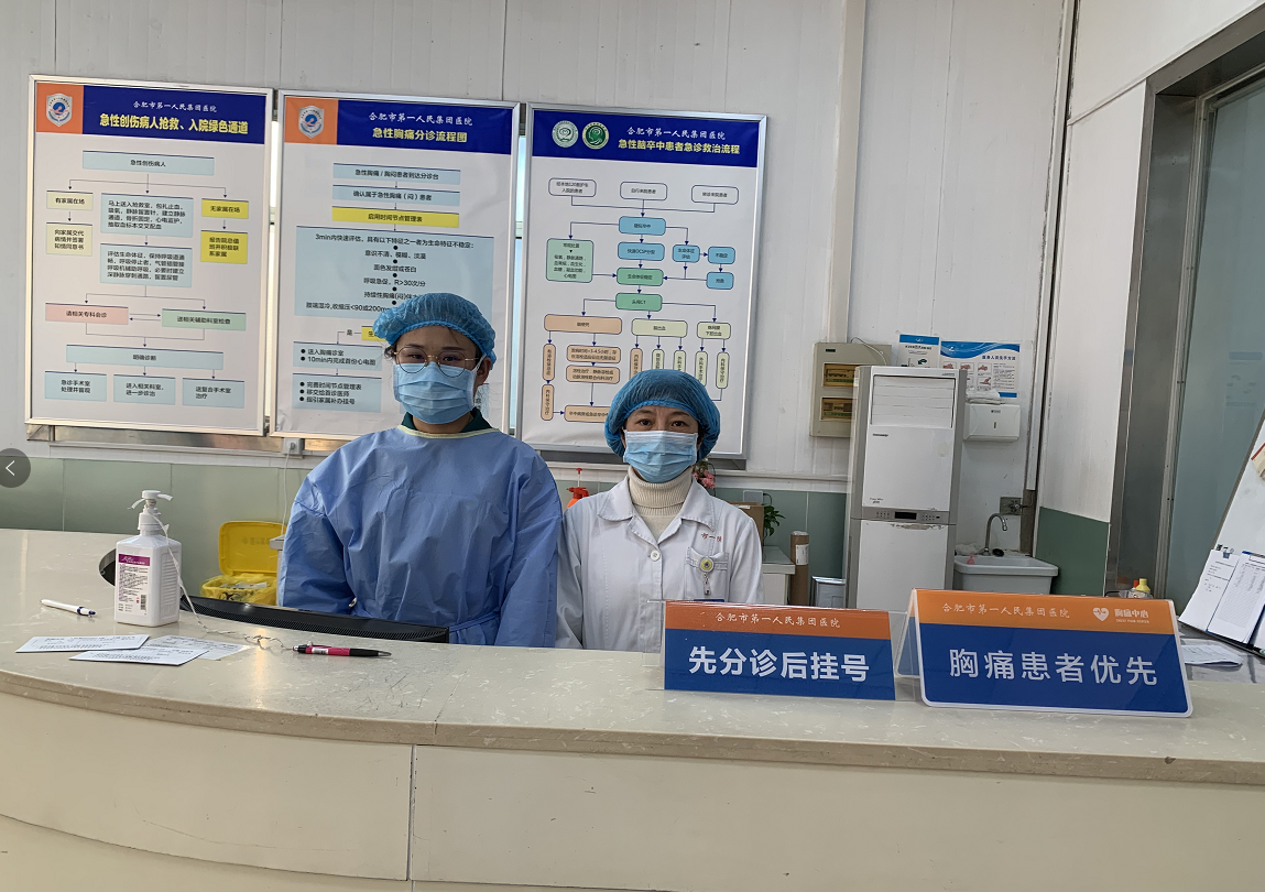 合肥市护理学会理事单位合肥市第二人民医院和平路院区的急诊和门诊也成为“战火”的最前线,他们除了承担疫情的预检分诊、发热门诊等相关工作,还肩负着救治急危重患者的任务,为患者的生命安全保驾护航。这次战役由于临近春节,人员流动性强,波及面广,防控较为困难,为了严防死守,护士长增加了预检分诊排班,正值除夕期间,人员紧张,科护士长鲁勤、护士长刘芳和王敬军始终守在医院,带头参与预检分诊的夜班,其它门急诊护理人员争先恐后报名参加,她们说“我是共产党员,我要冲锋在前”。疫情面前,他们选择不放假,不离城,不退缩。护士王飞,在抢救室已经上了一轮夜班,听说护士长要排发热门诊夜班并且人手紧张的时候,不辞辛苦及放下家中依旧生病未愈的宝宝,自告奋勇承担发热门诊夜班。