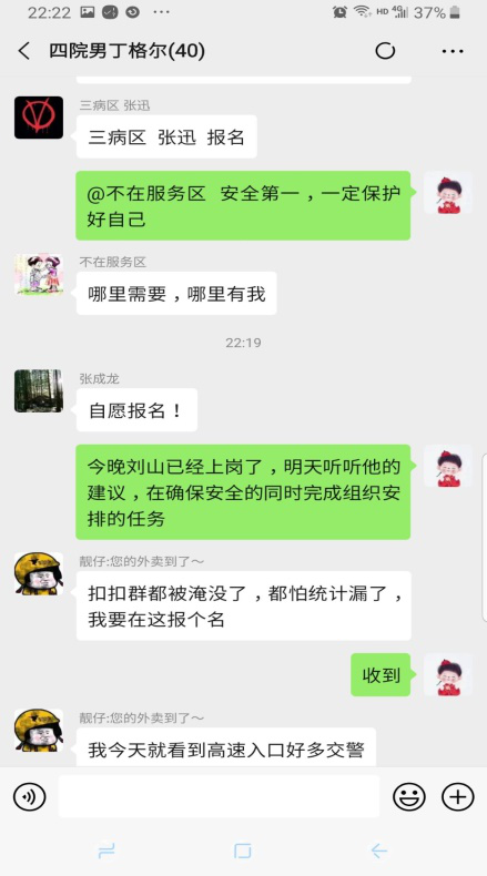 大年初一晚,市四院接到指令性任务,承担蜀山高速道口24小时疫情监测工作,护理部徐主任立即在护士群里组织报名。
