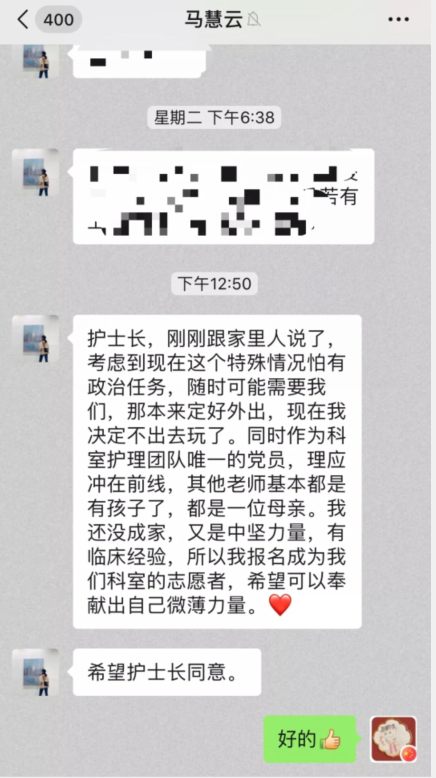 “不行,我们就在病区住下了!就不信我们打不赢这场仗!” 两个病区的科室成员纷纷表态,不仅愿意承担这项工作,而且一定会竭尽全力,不辱使命,全力守护患者的健康。团队成员的家属们也都很给力,不仅非常支持成员的工作,更是一个个送来日用品,让他们就安心在病区“安家”。五病区护士们说:“护士长的爱人也在合肥另一家疫情定点医院工作,夫妻两人已经连续两个多星期没回家了,他孩子那么小他都住在病区,有困难我们也能克服!”。四病区护士耿洁与在五病区的丈夫阮候勇并肩请战任务最艰巨的两个病区,护士王子提前结束产假返回病房工作……..