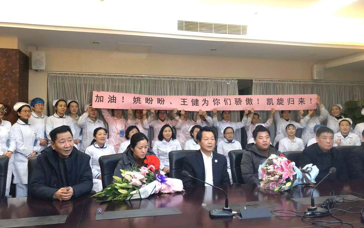 (ICU的男护士王健和感染科的主管护师姚盼盼驰援武汉出征仪式)