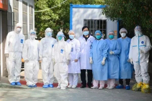3月2日我院实现合肥首个新冠肺炎收治医院确诊患者清零后,医护团队在新冠病房合影留念。