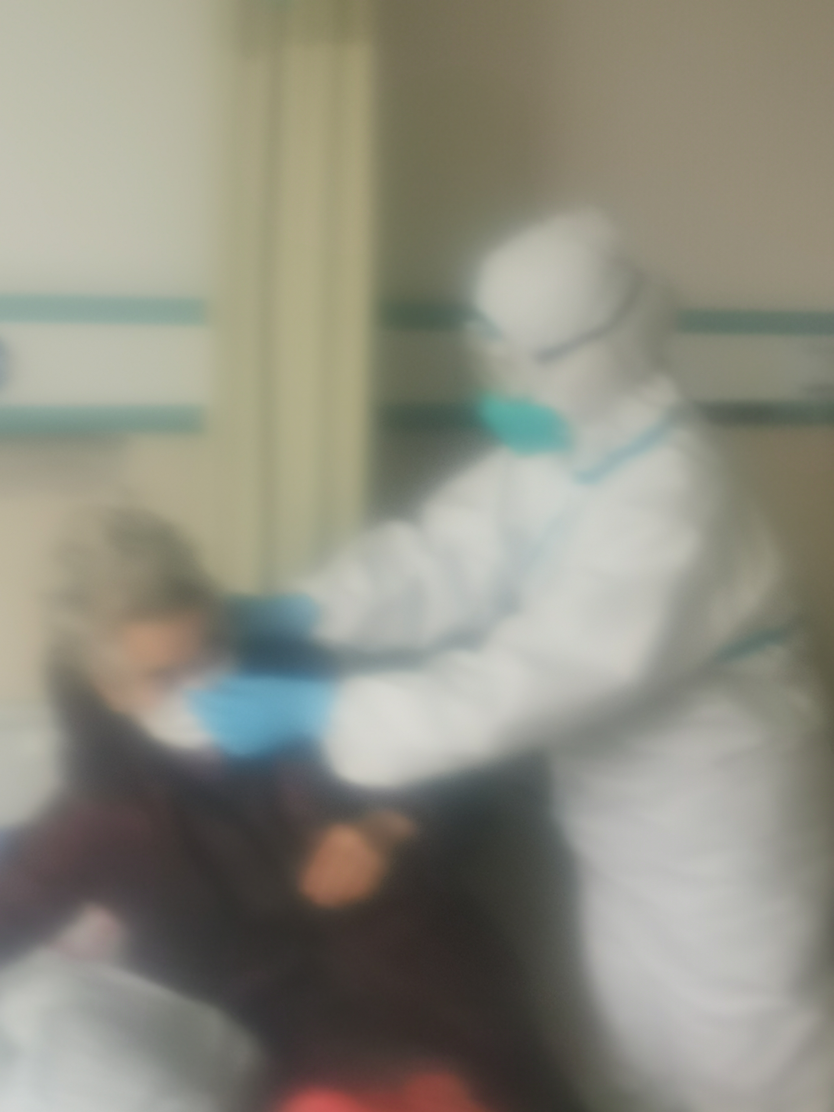 1月22日留观一名高度疑似人员,收进来时,梁主任交代,要高度注意,1月23日检查结果出来:阳性,需要转到专用负压病房。阳性转运的流程都已培训,可时实际操作时,还会遇到很多细节问题,需要电话汇报,向领导请示协调,患者准备,转运人员准备,确定路线,沿途人员控制,保卫协调,路线消毒等等。感谢我们有高效的领导,完善的协调机制,强大的保障支持系统。感谢默默奉献的集团一院人!阳性的患者转运结束后,将近19点,我和夏菁护士留守在病房,终末处理是危险性最高的操作,病人接触过的所有物体环境都需要严格消毒处理,正常流程是住院管理部的后勤人员来打扫,可是考虑到是阳性的患者终末处理,如果不是有经验的人员进去,会导致自身交叉感染。而且一旦处理不规范,对后面留观的患者也是隐患。我当即决定和夏菁护士一起进阳性留观病房去处理。备齐用物,我们俩全服武装进入阳性区。终末处理:床头桌,床单元,呼叫器,开关,床单,被套,被芯,椅子,水瓶 ,垃圾袋,卫生间,墙面,空气消毒机,空调。我们一处也不放过,360度处理。厚厚的防护服,使我们俩全身是汗,面罩早已被我们自己呼出的热气蒙上的厚厚的雾气。怕她担心,我一直鼓励她。处理结束后,当我们俩把用84液浸泡过后的重重的床单被罩用垃圾袋扎紧备洗时,已到晚上8点多,能明显的感觉到,她有一种经历过后,心理成长的自豪感!