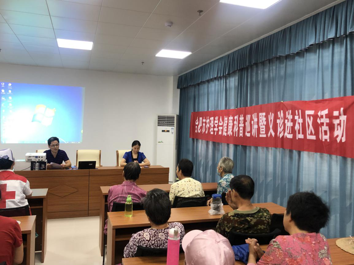 为贯彻《健康中国行动(2019-2030年)》战略计划,积极参与和支持健康中国战略,营造健康促进的社会环境、落实健康知识普及行动、强调预防为主的观念,合肥市护理学会、合肥市第一人民集团医院联合主办健康科普知识进社区活动。