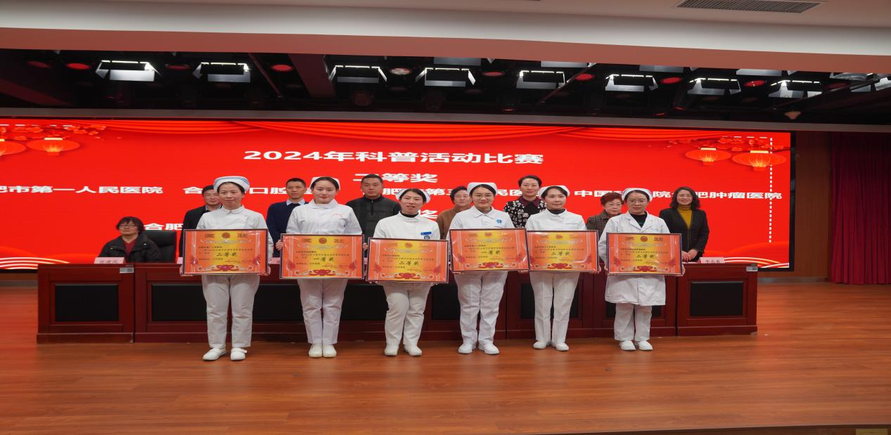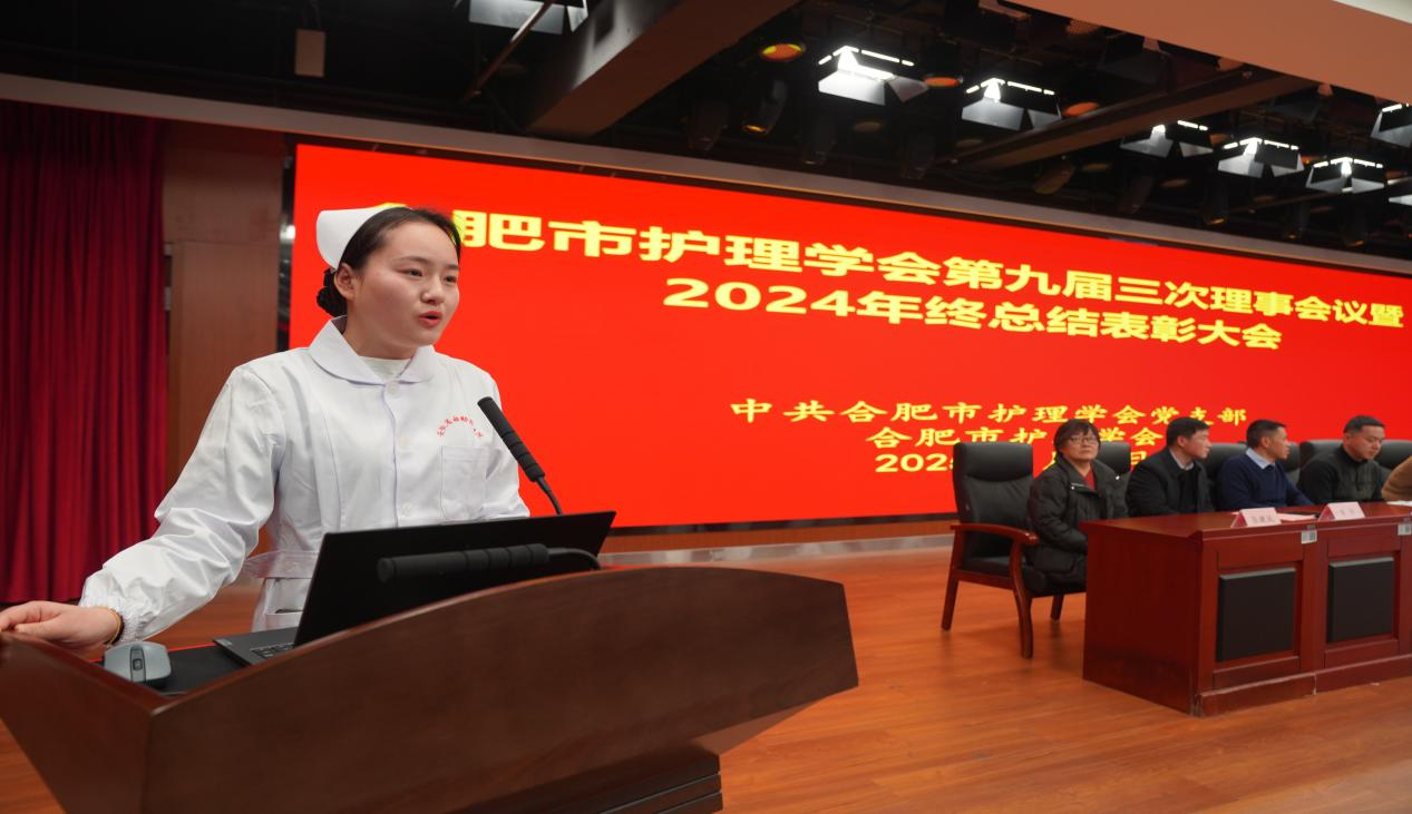 在接下来的环节中,合肥市护理学会潘爱红秘书长做了 2024 年工作总结及 2025 年工作计划。合肥市护理学会伍翠云副理事长宣读了2024年科普活动比赛、护理用品创新大赛、优秀护理论文、“庆祖国华诞 展天使风采”演讲比赛等活动的表彰奖励决定。2024年科普活动比赛获奖单位代表上台发言,分享了自己的获奖心得和工作经验。